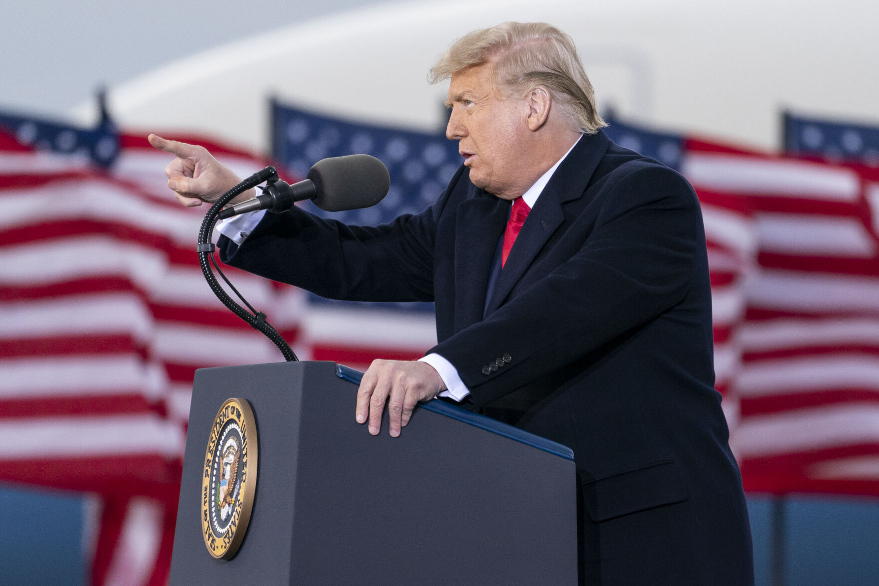 President Donald Trump speaks during a campaign rally at Muskegon County Airport, Saturday, Oct. 17, 2020, in Norton Shores, Mich. (AP Photo/Alex Brandon)